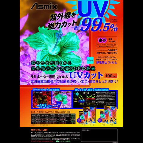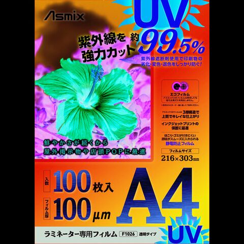ASKA ラミネートフィルム UVカット A4 100枚 100ミクロン [F4003] F4003 販売単位:1 送料無料