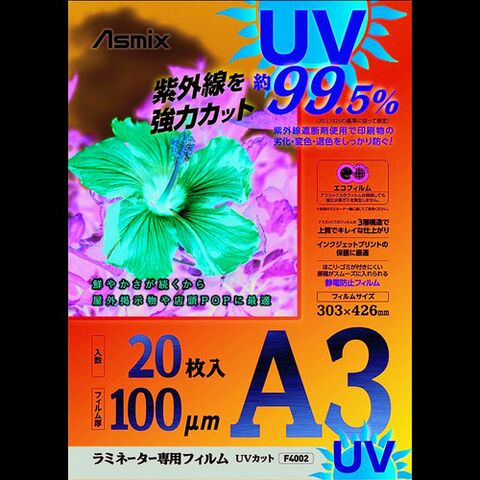 ASKA ラミネートフィルム UVカット A3 20枚 100ミクロン [F4002] F4002 販売単位:1