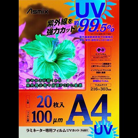 ASKA ラミネートフィルム UVカット A4 20枚 100ミクロン [F4001] F4001 販売単位:1