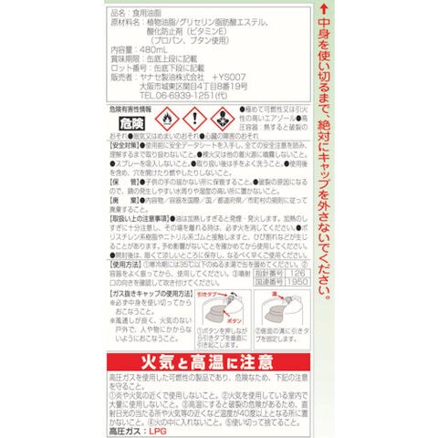 ヤナセ 【※軽税】 食品機械用潤滑剤 バイオアドニール スプレータイプ 480ML [11910] 11910 販売単位:1