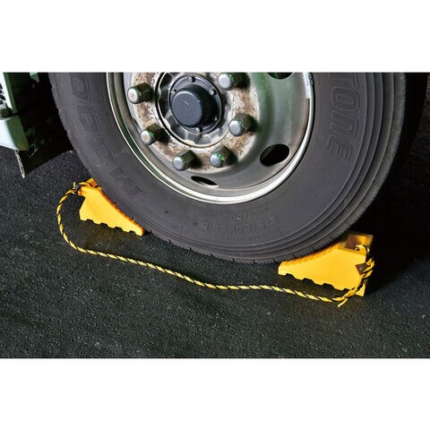 緑十字 タイヤストッパー(輪止め) 大型車用(10t車迄) 黄 タイヤストッパー5Y 2個組(トラ柄ロープ1.2m連結) 樹脂製 [120005] 120005 販売単位:1 送料無料