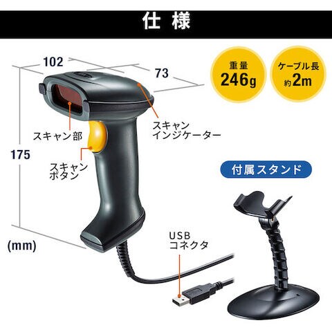 SANWA 1次元レーザーバーコードリーダー(1次元・1D・USB Type-A・レーザー・スタンド付き・オートセンシング) [BCR-006] BCR006 販売単位:1 送料無料