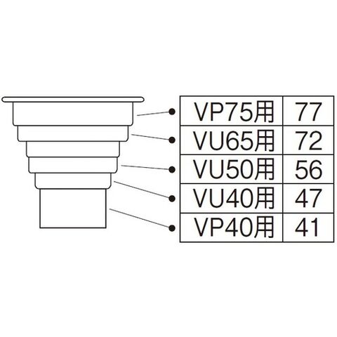 • VUパイプ(40・50・65)、VPパイプ(40・75)の排水口に使用可。