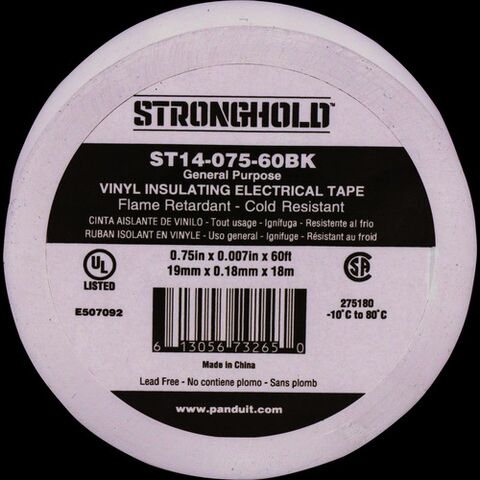 ストロングホールド StrongHoldビニールテープ 一般用途用 黒 幅19.1mm 長さ18m ST14-075-60BK [ST14-075-60BK] ST1407560BK 販売単位:1