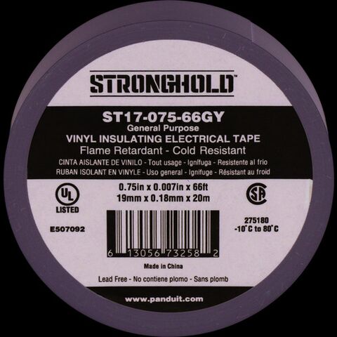ストロングホールド StrongHoldビニールテープ 一般用途用 グレー 幅19.1mm 長さ20m ST17-075-66GY [ST17-075-66GY] ST1707566GY 販売単位:1
