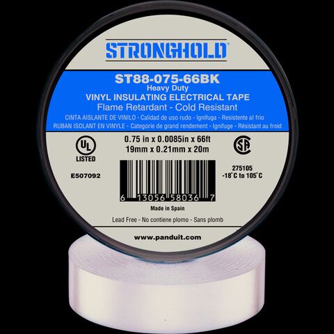 ストロングホールド StrongHoldビニールテープ 耐熱・耐寒・難燃 ヘビーデューティーグレード 黒 幅19.1mm 長さ20m ST88-075-66BL [ST88-075-66BK] ST8807566BK 販売単位:1