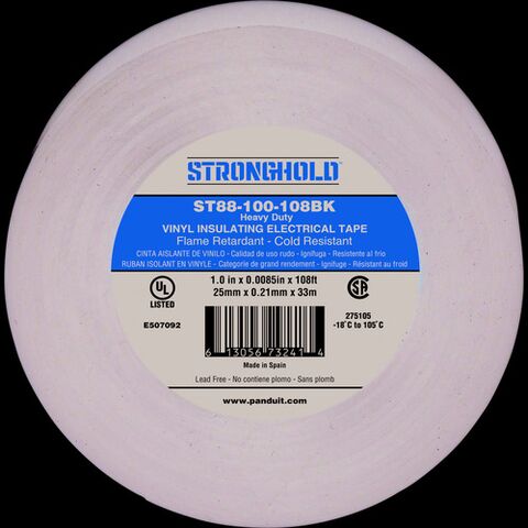 ストロングホールド StrongHoldビニールテープ 耐熱・耐寒・難燃 ヘビーデューティーグレード 黒 幅25.4mm 長さ33m ST88-100-108BK [ST88-100-108BK] ST88100108BK 販売単位:1