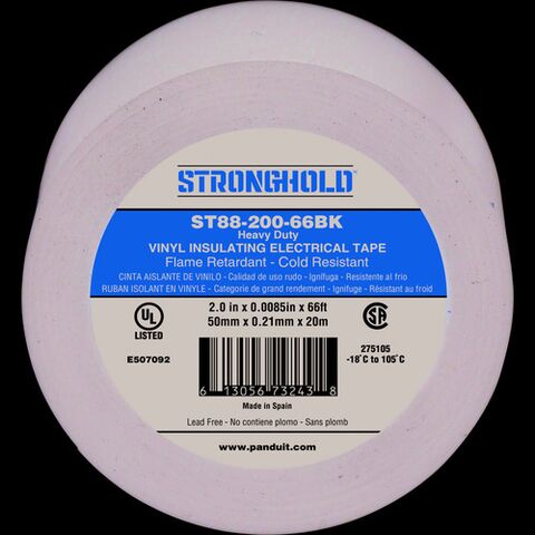 ストロングホールド StrongHoldビニールテープ 耐熱・耐寒・難燃 ヘビーデューティーグレード 黒 幅50.8mm 長さ20m ST88-200-66BK [ST88-200-66BK] ST8820066BK 販売単位:1