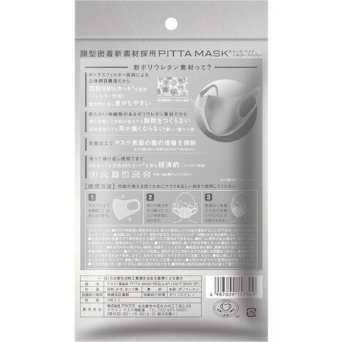 アラクス ピッタ マスク レギュラー ライトグレー 3枚入 [157309] 157309 販売単位:1
