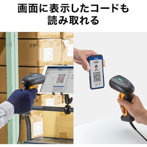 SANWA 2次元バーコードリーダー(1次元・2次元・1D・2D・QR・日本語QR・USB Type-A・液晶画面読取・スタンド付き・IP67) [BCR-2D6] BCR2D6 販売単位:1 送料無料