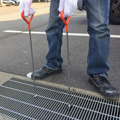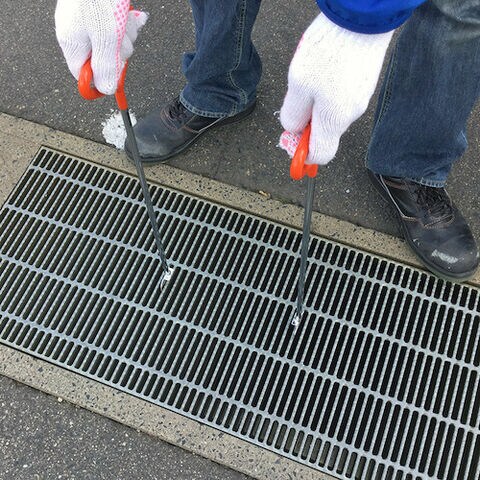 • ドブ掃除・業務用・防災用の溝掃除におけるグレーチングの吊上げに。