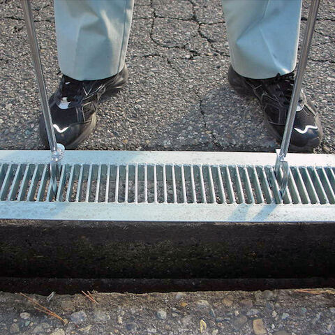 • グレーチングを地面(平らな場所)に置いたままでもスムーズに持ち上げることができます。