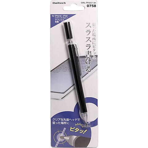 Owltech 狙った場所にピタッとスラスラ書けるクリアな丸型ヘッド静電式タッチペン [OWL-TPSE01-BK] OWLTPSE01BK 販売単位:1