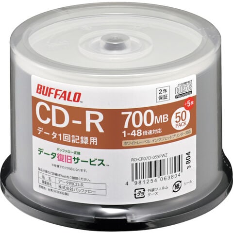 BUFFALO 光学メディア CD-R PCデータ用 700MB 法人チャネル向け 50枚+5枚 [RO-CR07D-055PWZ] ROCR07D055PWZ 販売単位:1