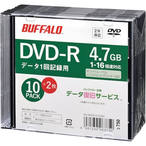 BUFFALO 光学メディア DVD-R PCデータ用 4.7GB 法人チャネル向け 10枚+2枚 [RO-DR47D-012CWZ] RODR47D012CWZ 販売単位:1