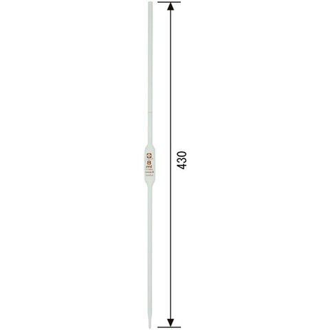• 目盛は通常1本のみで、目盛のある部分の管径が細いため、同容量のメスピペットより目盛の精度が高いです。