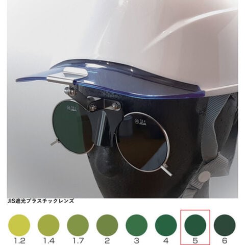 • ヘルメットひさしに差し込むだけで使える炉前作業、仮付けなどに最適なフロント形遮光めがね