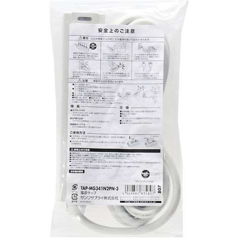 SANWA 電源タップ [TAP-MG341N2PN-3] TAPMG341N2PN3 販売単位:1 送料無料のレビュー