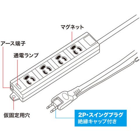 • 3P4個抜け止めマグネット、通電ランプ付電源タップ3mです。