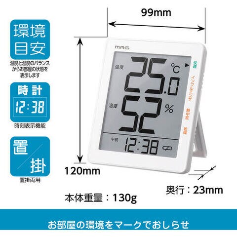 MAG 温湿度計 デジタル 時計 環境目安 置き掛け兼用 スタンド ホワイト TH-105WH [TH-105 WH] TH105WH 販売単位:1