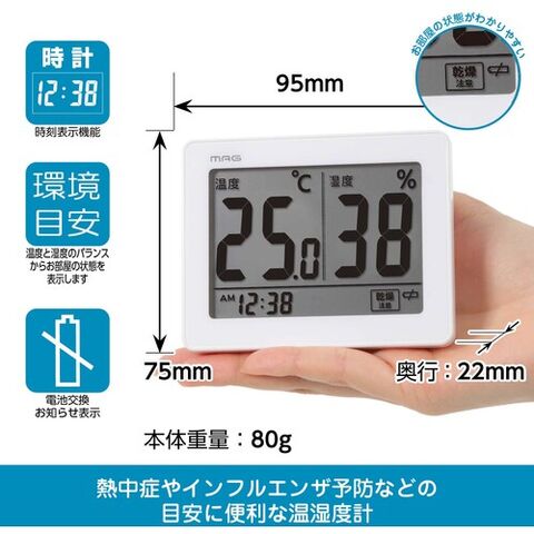 MAG 温湿度計 デジタル スカイ 時計 環境目安 置き掛け兼用 スタンド ホワイト TH-109WH-Z [TH-109 WH-Z] TH109WHZ 販売単位:1