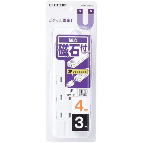 ELECOM 磁石タップ 4個口(内3ピン1) 3m ホワイト [T-KM01-2430WH] TKM012430WH 販売単位:1