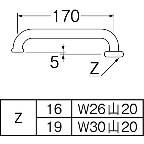 SANEI 横形パイプ 直径16mm 長さ170mm W26山20 [PA20J-60X-16] 販売単位:1