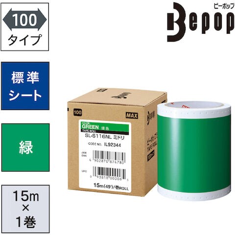 MAX ビーポップ 標準シート 100mm幅シート SL-S116NL 緑 (15m×1巻入) [SL-S116NL] SLS116NL 販売単位:1 送料無料