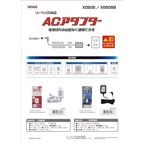 REVEX ACアダプター(1.8m) X0505 [X0505] X0505 販売単位:1