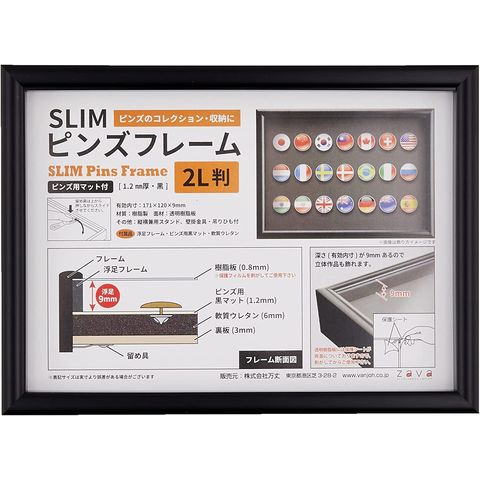 ピンズフレーム スリム 2L判 ブラック 額縁 おしゃれ 壁掛け 卓上 ピンバッジ コレクション ボード クリスマスプレゼント クリスマススペック