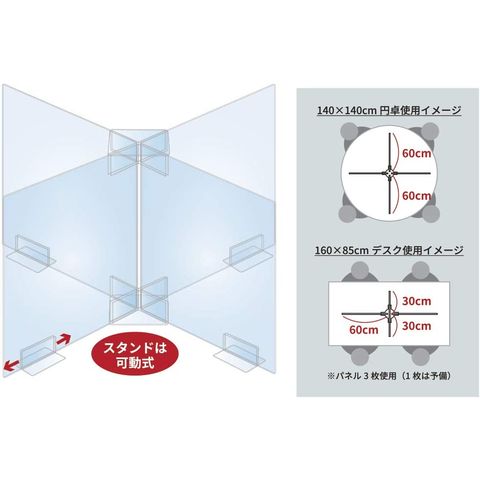 円卓用アクリル飛沫防止パネル 6060 4人用S パーテーション 仕切り板 卓上 大型 披露宴 結婚式 イベント 飛沫予防 感染対策スペック