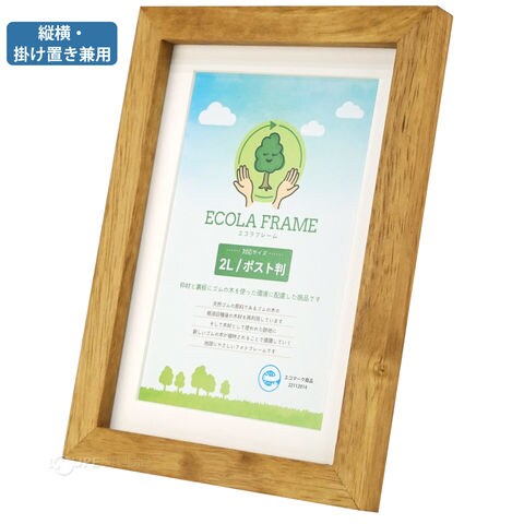 フォトフレーム 写真立て 2L/ポスト判 壁掛け おしゃれ プレゼント 結婚祝い 縦 横 スタンド エコラフレーム 木製 アンティーク 写真 イラスト 絵 飾る
