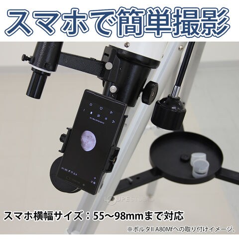 | 付属品 | 接眼レンズ(SLV20mm/SLV5mm) パーツケース ウェイト1kg×1個、1.9kg×1個 スマホアダプター【スマホ横幅サイズ:55~98mmまで対応】 |