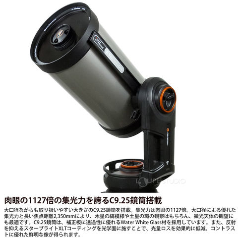 集光力が肉眼の1127倍を誇るシュミットカセグレンC9.25鏡筒とNexStarEvolutionマウントのセットです。三脚はCPCシリーズに使用されている大型三脚仕様です。