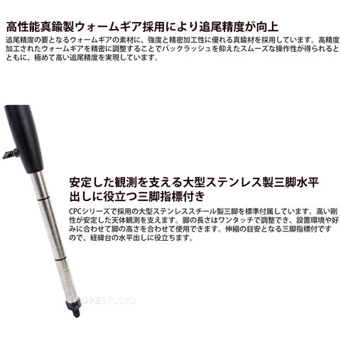 集光力1127倍を誇るC9.25鏡筒とCPC用三脚を使用したNexStarEvolutionのセット。連続約7時間使用可能なバッテリー内蔵