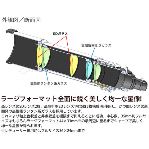| 焦点距離(口径比F) | 495mm(F5.5) |