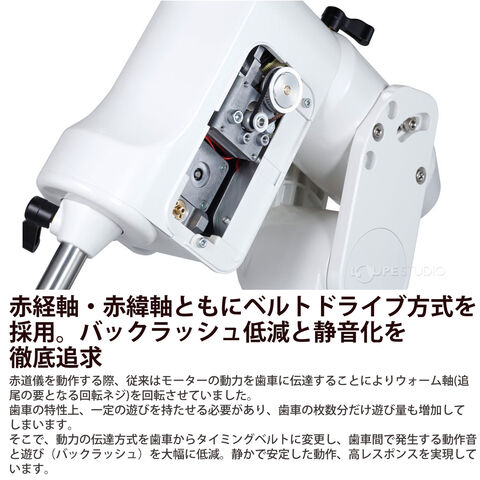 | 自動導入・追尾 | ワイヤレスユニット+スマートフォン(専用アプリ)による自動導入 最高約1,000倍速(対恒星時)、高精度追尾 |