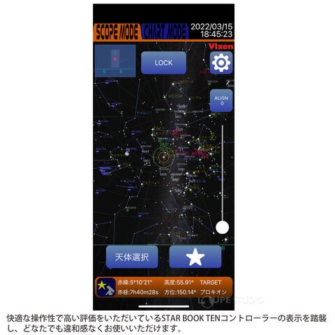 大口径フォトビジュアル「VC200L鏡筒」を搭載。VC200L鏡筒は写野全体の無収差を目指した大口径フォトビジュアル鏡筒です。高剛性、高レスポンス、高精度追尾などの高性能をスマホアプリで手軽にコントロールできるSXシリーズ最高峰モデル「SXP2赤道儀WL」との組み合わせで、レベルの高い天体観測をお楽しみいただけます。