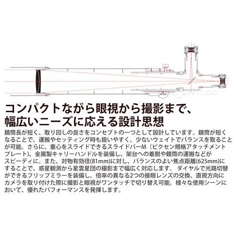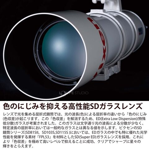 | 対物レンズ | 81mm/SDアポクロマート、マルチコーティング SD(Super ED)ガラスレンズ採用 |