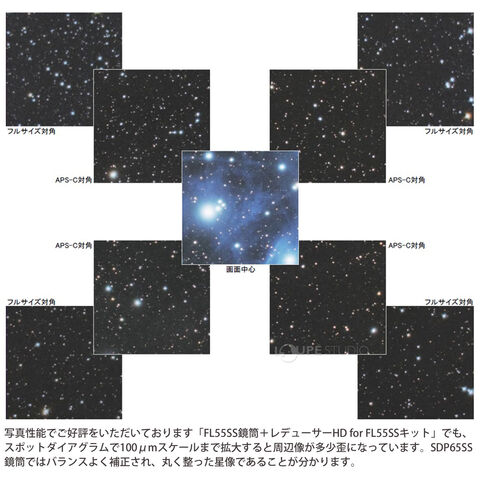 イメージサークルφ30mm(APS-Cをカバー。最周辺光量90%以上)。フルサイズ最周辺φ44mmでも星像の崩れを最低限に抑えつつ、光量70%を確保しています。