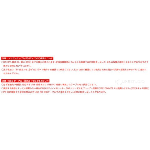 レンズヒーター360シリーズおよびレーザー距離計VRF1000VZRでは通電しません(2024年4月現在)。