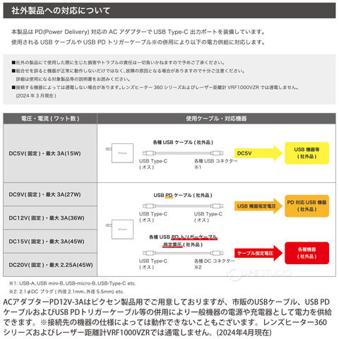 AC アダプター PD12V ・ 3A 天体観測 ビクセン VIXENスペック