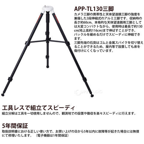 | セット内容 | SDE72SS鏡筒 AP-WLマウント APP-TL130三脚 |