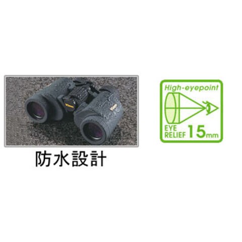 - ハイアイポイント設計・・・アイリリーフ15mmとハイアイポイント設計のため、覗きやすく、メガネをかけた方でも周辺部まで十分な視界を確保しています。
