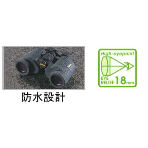 - ハイアイポイント設計・・・アイリリーフ15mmとハイアイポイント設計のため、覗きやすく、メガネをかけた方でも周辺部まで十分な視界を確保しています。