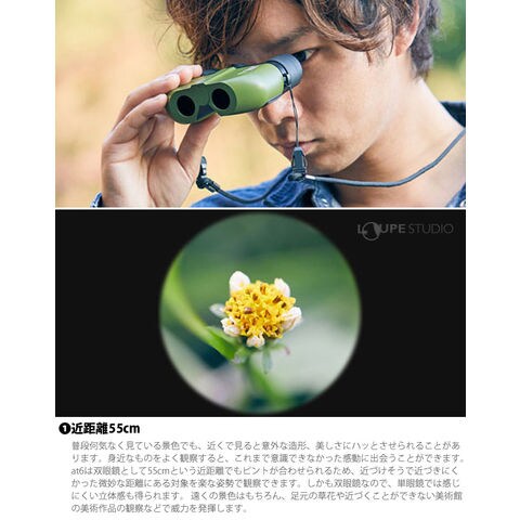 約55cmという近距離でもピントが合わせられる双眼鏡「at6」。遠くの景色はもちろん、足元の草花や近づくことができない美術館の美術作品の観察などで威力を発揮します。