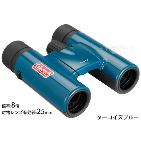 アウトドアスタイルをグレードアップする、上質なカラーと機能を兼ね備えた8倍双眼鏡。レンズ全面に光のロスを抑えるコーティングを施し、明るく鮮明な視界を実現しています。キャンプ用品メーカーで有名なコールマン社とのコラボレーション商品です。アウトドアもオシャレに演出したい。でも光学性能にもこだわりたい、そんなあなたに最適な双眼鏡です。倍率8倍、対物レンズ有効径25mm。薄暗い森林でも明るい視野を得られることを前提としたスペックを採用しています(ひとみ径3mm以上)。レンズ全面に反射防止多層膜コートを施し、光のロスを抑えています。クッキリとクリアな視界が得られます。本体は丈夫なアルミダイキャストボディ。