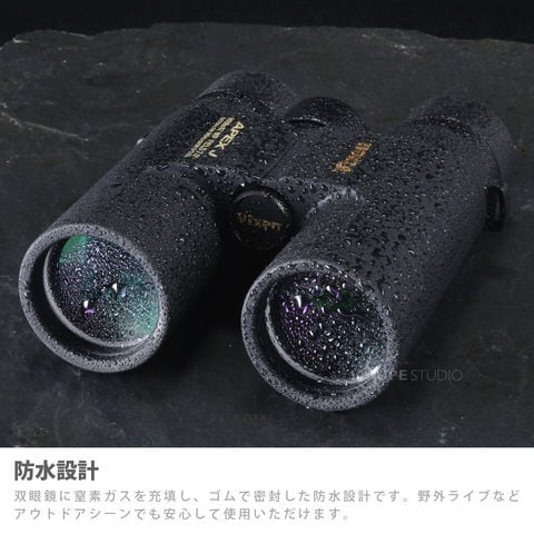 色にじみを抑えシャープな描写を実現するEDガラスレンズを採用した大口径42mm、倍率8倍の防水双眼鏡です。防水設計で野外ライブ・コンサートも安心。