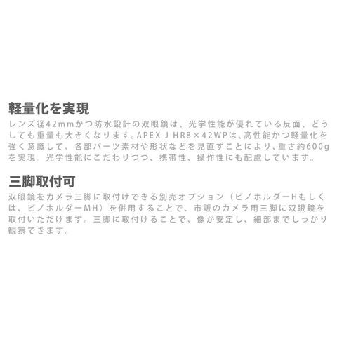 ビクセン 8倍 双眼鏡 APEX J HR8×42WP 日本製 コンサート 野外ライブ アペックスJ 防水双眼鏡 オペラグラス 軽量 Vixenスペック