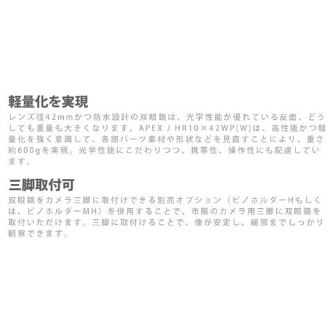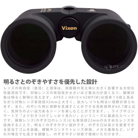 双眼鏡 コンサート ライブ 10倍 アペックス APEX J HR10x42WP(W) ビクセン 防水 日本製 野外 ライブ用 ドーム オペラグラス スポーツ観戦 野球観戦 バードウォッチング 野鳥観察 推し活 観劇 舞台 人気 ドーム 音楽観賞スペック